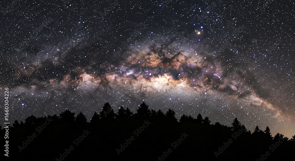 Kawa - 漆黒夜空輝く天の川 壮大な星空 シルエットの木々 (Shikkoku yozora kagayaku ten no kawa soudai na hoshizora shiruetto no... #1660304226