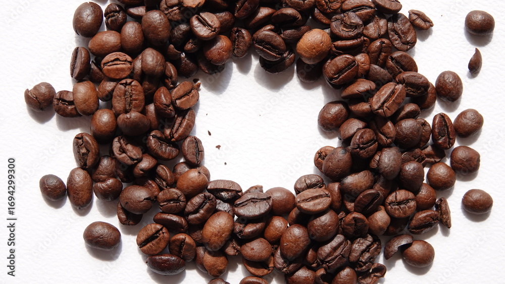 Kawa - Brązowe ziarna kawy na białym tle #1694299300