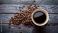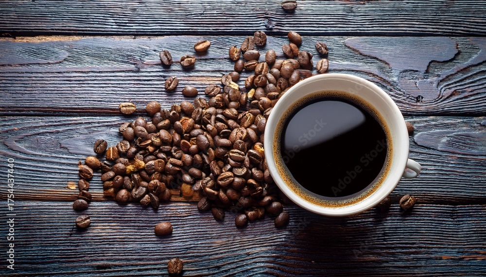 Kawa - Czarna Kawa Na Starych Deskach I Rozsypane Ziarna #1754437440