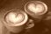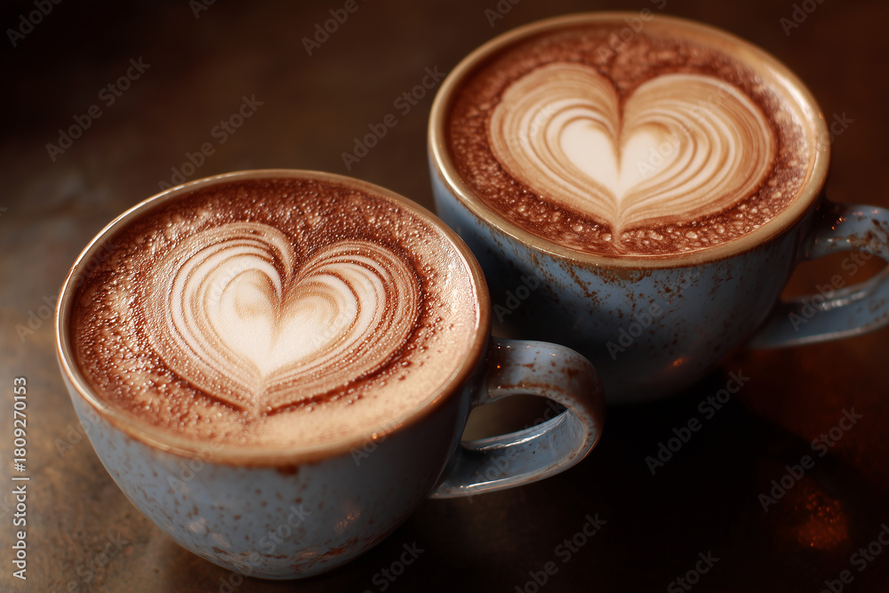 Kawa - Dwie filiżanki kawy z mlecznymi serduszkami, idealne na walentynkową randkę #1809270153