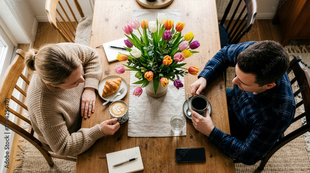 Kawa - Domowe pogaduchy przy kawie, widok z góry. #1934256791