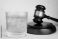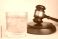 • Alcohol offenses concept.Glass of whiskey with gavel hammer background.
