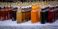 • Rows of bottles of homemade alkohol tincture, standing outdoors on the table.