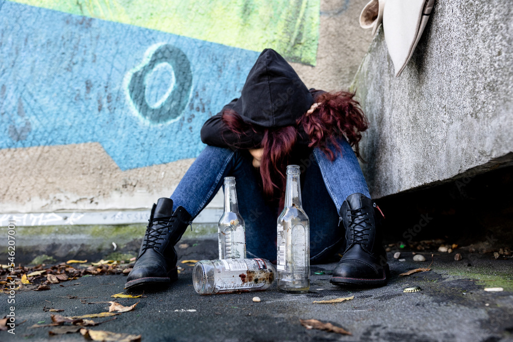 Alkohol - Sesja ilustracyjna z dziewczyna w dżinsach i glanach #546207001
