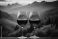 • Zwei Gläser Rotwein. Fantastische Aussicht auf die Weinberge im Hintergrund - Generative Ai