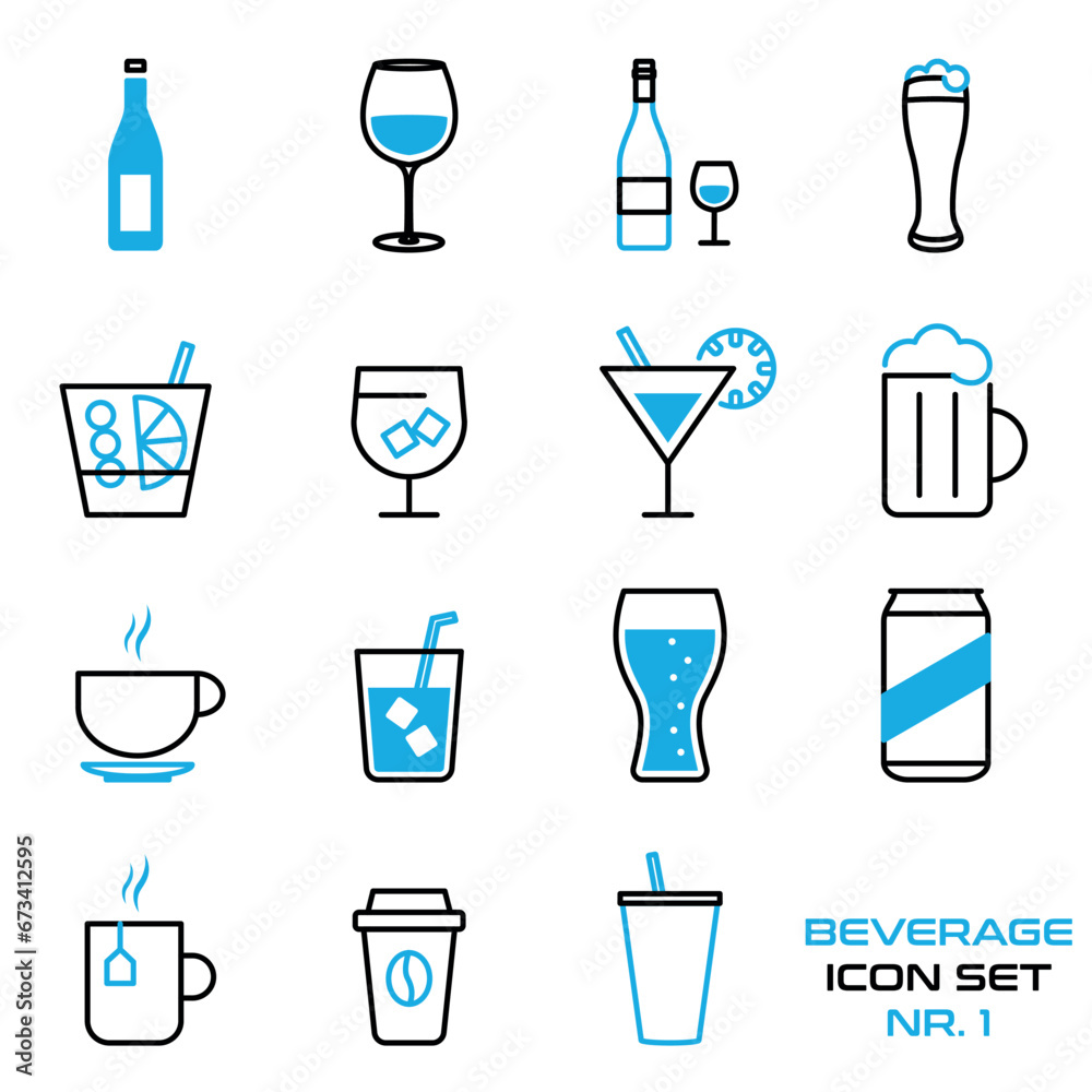 • Getränke, Bar, Restaurant - Icon Set, Zeichen, Symbole