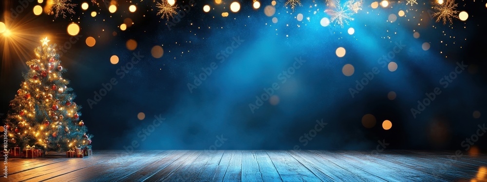 • Traditional Christmas nutcracker ballet scene, with festive stage decorations