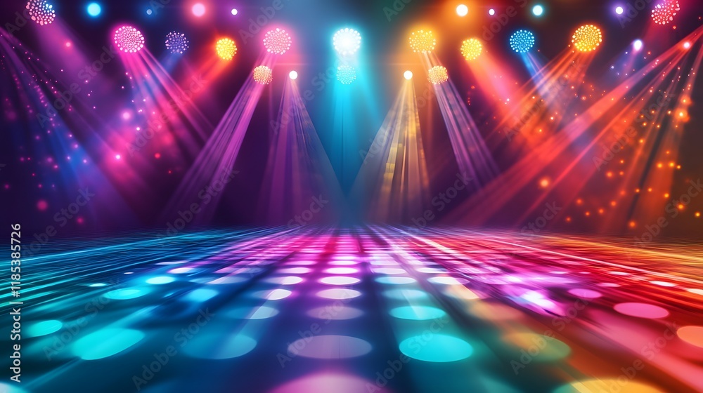 Taniec - Colorful Stage Lights Illuminate Dance Floor #1185385726