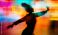 • Woman dancing in vibrant colors during a lively urban festival at night