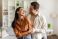 • Loving man embracing his wife while dancing in living room, couple enjoying time together. Happy marriage, romantic love relationships