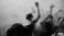 • Young people dancing energetically at a vibrant music festival with colorful lighting and fog effects. Concept of concert, party, music, rhythm.