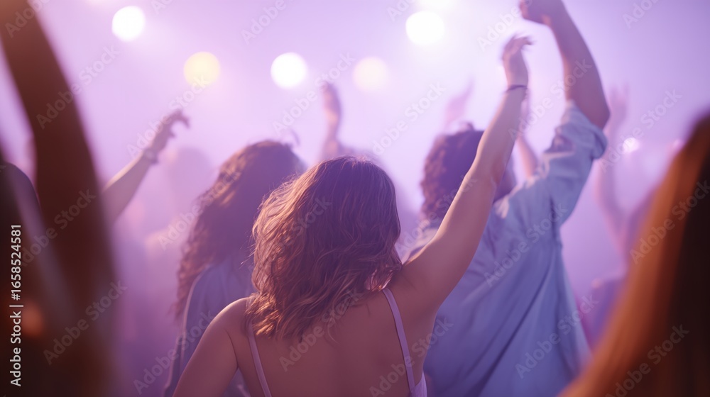 Taniec - Woman is dancing with her arms raised in the air. #1658524581