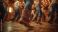 • Close-up of people wearing cowboy boots and jeans dancing together on a wooden floor in a warmly lit rustic setting with string lights creating a festive atmosphere