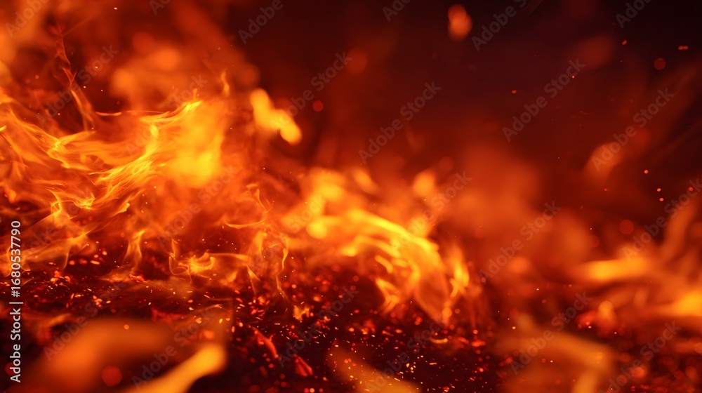 Taniec - A vibrant, fiery display of flames dancing over glowing embers, creating a captivating scene of... #1680537790