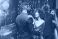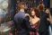 • Young adult Caucasian man dancing with young adult Asian woman at formal event, both smiling and making eye contact, other young adults dancing in background, festive atmosphere