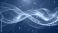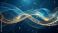 • An ethereal abstract design featuring swirling ribbons of deep ocean blue and radiant gold light, flowing together in a fluid, cosmic dance
