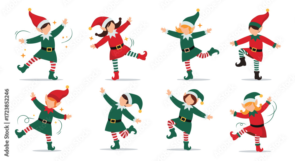 Taniec - Cheerful elves dancing and celebrating during the holidays. #1723852246