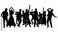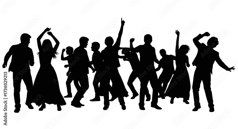 Taniec - Happy people enthusiastically dancing with arms repssed, celebrating a vibrant event or enjoying... #1736029213