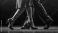 Taniec - Close-up of a couple's legs dancing the tango. Woman in red high heels and man in black shoes on... #1781431416