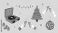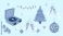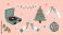 • A collection of retro-style Christmas and New Year's Eve party celebration stickers on a pink background.
