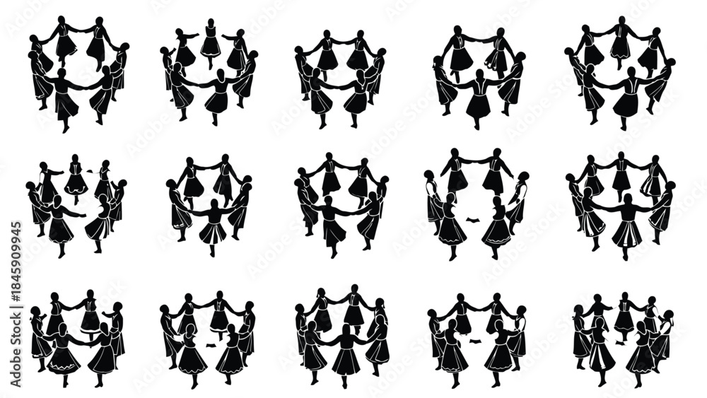 Taniec - Folk Circle Dance Step Icon Vector Illustration | Traditional Group Dance Movement Symbol |... #1845909945