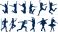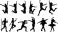 • Jumping and dancing people silhouettes set expressing freedom, joy and movement, energetic lifestyle actions, dynamic poses, black white illustrationWeb