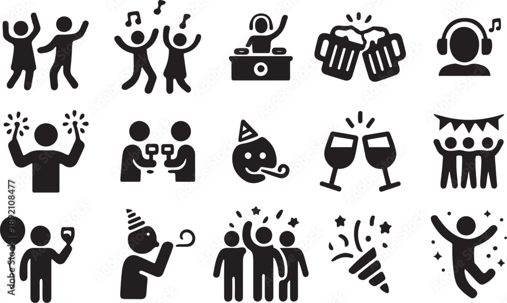 • Party Icons Collection – People Having Fun Vector Illustration Set
