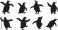 • Penguin silhouette illustration set, dancing bird artwork, arctic animal vector design, playful wildlife graphic pack, cold climate symbol collection, sketch