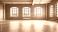 • Large empty studio - dance room with wooden floor, brick wall, large windows