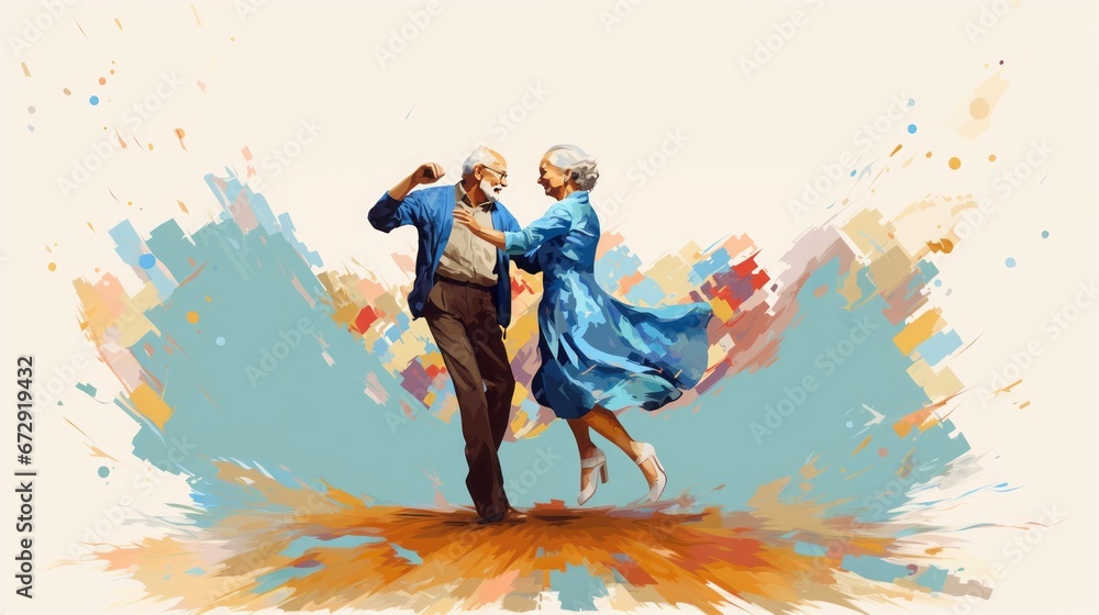 Taniec - Old senior happy couple woman family man people mature dance love home fun. Grandmother happy old... #672919432