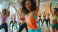 • High-energy dance fitness class with vibrant music and dynamic movements