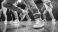 • Hip hop dancers showcasing their skills in an urban setting combining contemporary street dance with breakdancing in a studio and practicing hip hop in a formal dance studio cropped close u