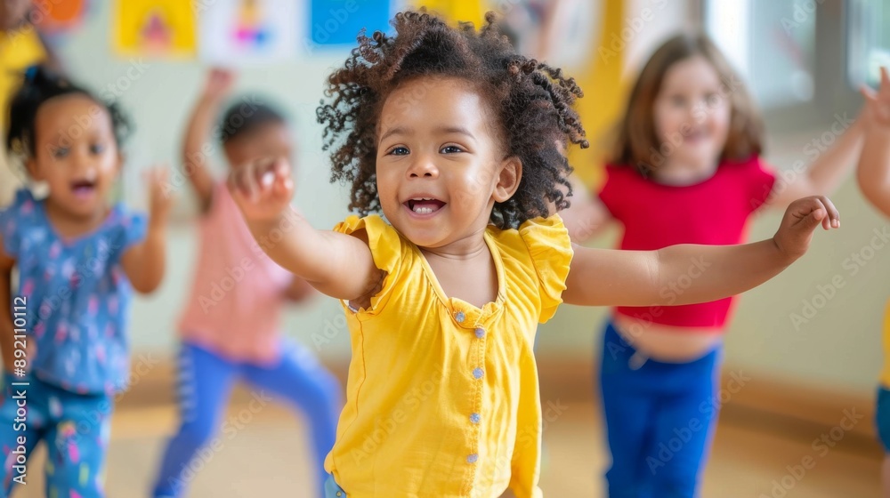 Taniec - Children dancing happily together at nursery school #892110112