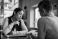• Adult businesswoman discussing paperwork with mature colleague in office, thoughtful