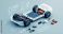 • 3D electric car assembly steps with detailed components and layout, showcasing battery, chassis, and various parts in clear infographic style