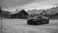 Auta - At sunset, a dark blue car is parked close to a cozy wooden cabin in the snowy mountains. By Tuty #1502683864