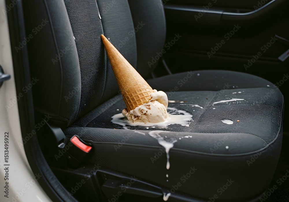 Auta - Melting ice cream cone spilled on car seat during summer drive #1513495922