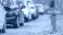 Auta - Eco Park sign close-up with a long line of idling cars stretching into the forest, traffic jam in... #1595301971