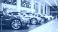 • Blurred Rows of Cars in Bright Indoor Showroom with Tile Floors Featuring Red Silver Black and White Vehicles