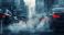 Auta - City street filled with cars in a traffic jam, emitting smoke. A visual representation of air... #1711895597