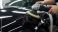 Auta - Professional auto detailer polishing a black car with a machine buffer. Close-up of paint... #1726160693