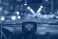 • Gps device displaying wifi signal mounted on car dashboard with blurred city lights in background at night