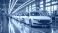 • New cars rolling off the assembly line in a modern automotive factory