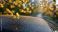 Auta - Golden flowers and dense pollen on car rooftop under bright sunlight along scenic tree-lined road #1893698700