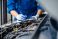 Professional mechanic working on the engine of the car in the garage. Car repair service.