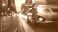 Close-up shot of the side of a car on the road in the evening