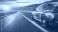 car driving in motion, blue car on high speed . Blue car rushing along a high-speed highway.banner