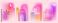 Ramadan Kareem colorful cards, backgrounds, compositions. Islam design elements. Mosque, moon, stars, palms, lanterns. Holy month greetings.