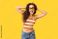 Samoloty - Beautiful African-American woman with sunglasses on yellow background #1966687445