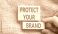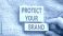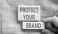 • Protect your brand words symbol. Concept words Protect your brand on beautiful wooden blocks. Beautiful canvas background. Businessman hand. Business and protect your brand concept. Copy space.